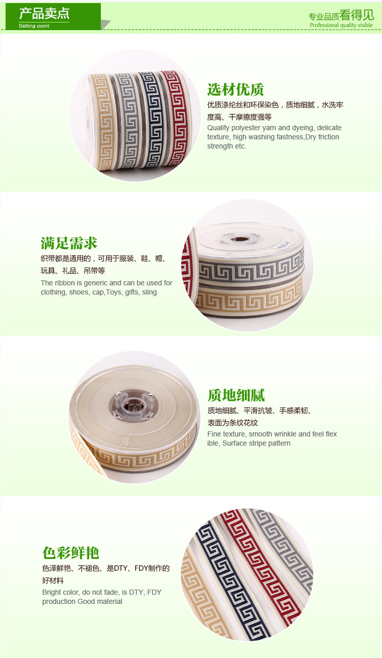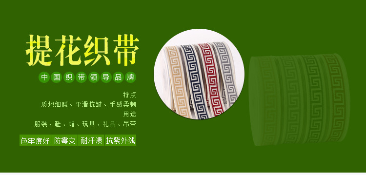 主營(yíng)產(chǎn)品:提花織帶,韓國(guó)織帶,編織帶,仿尼龍織帶,緞帶/羅紋帶,子母織帶,熱轉(zhuǎn)印織帶,間色織帶